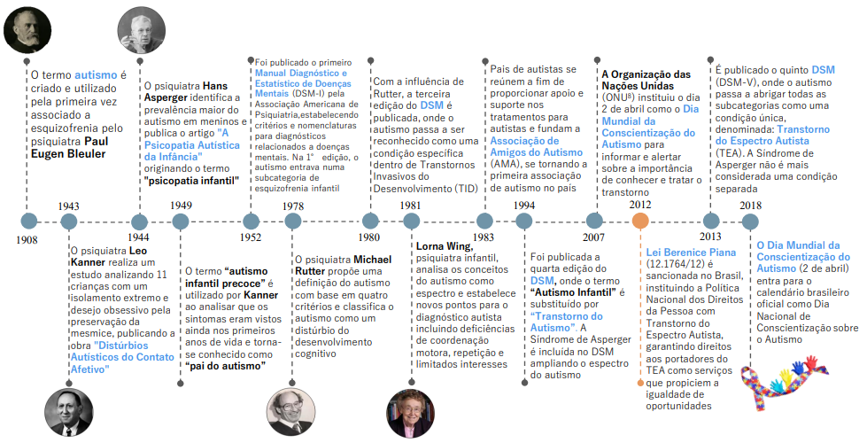 Figura 1: Linha do tempo em ordem cronológica sobre definição e caracterização do TEA.